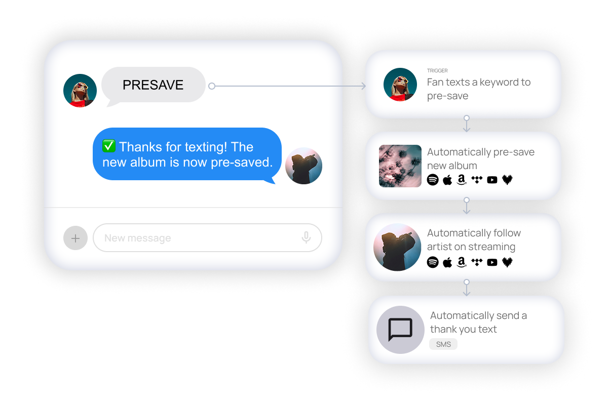 When fans text you, follow you, or pre-save your music, your system automatically takes the next step.