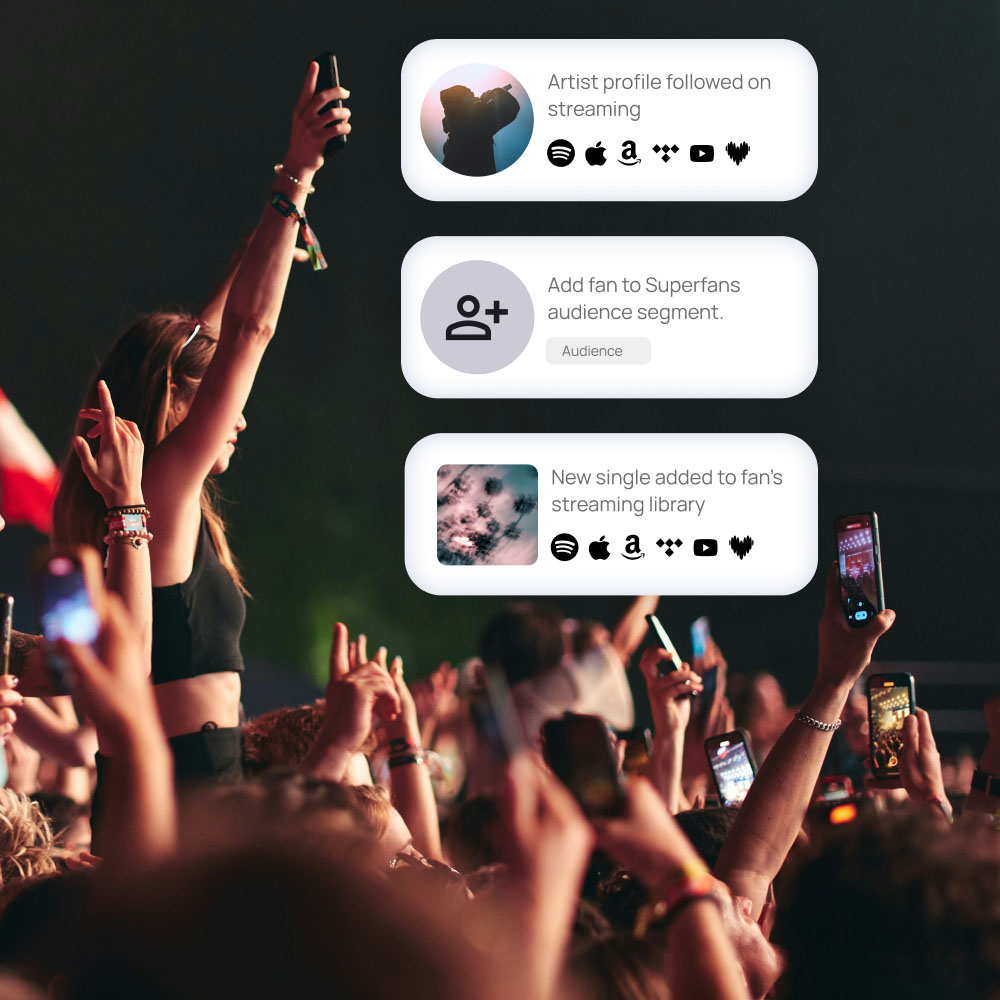 Yes. Action Flows connect SMS, email, Instagram, and streaming platforms into a single system. Fans can start anywhere and your flow handles the rest.