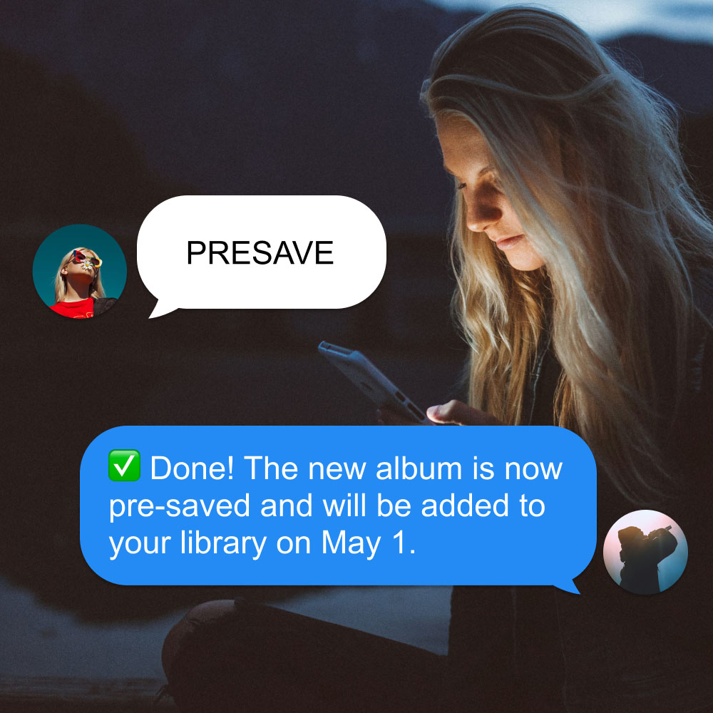 Fans text a keyword → your album is pre-saved instantly. No landing page. No drop-off. No friction.
